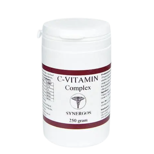 Produktinformation. Artikelnummer 206C. 250 gram pulver. Kalciumaskorbat ska inte förväxlas med enklare former av C-vitamin. Det har ett neutralt pH-värde vilket gör det mer skonsamt för magen. Kalciumaskorbat innehåller 90% askorbat (vitamin C) och 10% kalcium. C-vitamin Complex är ett kosttillskott. Rekommenderad dos bör ej överskridas. Förvaras oåtkomligt för barn. Kosttillskott bör ej användas som ett alternativ till en varierad kost.