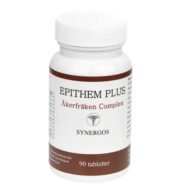 Epithem Plus är ett komplex bestående av en rad vitaminer, mineraler, spårämnen och aminosyror som spelar en viktig roll för reparation och produktion av epithemvävnad. Hit hör bl.a celler i hår, hud, naglar och slemhinnor.