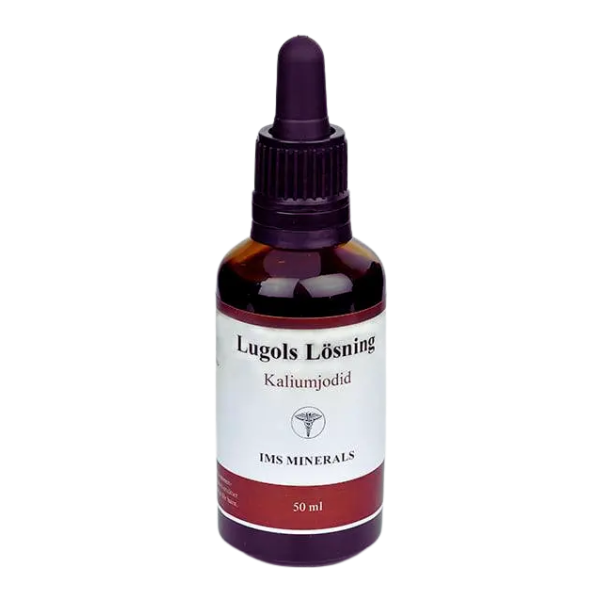 Produktinformation. 50 ml. Jod Lugols Lösning är ett kosttillskott. Rekommenderad dos bör ej överskridas. Förvaras oåtkomligt för barn. Kosttillskott bör ej användas som ett alternativ till en varierad kost.
